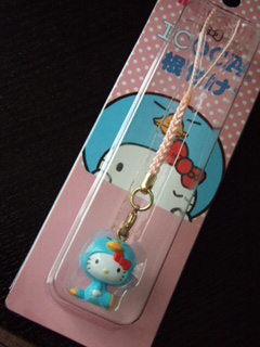 巫女さん姿のキティが鈴をならして、お祓いしています。